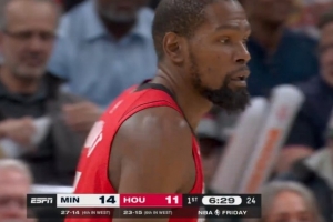 半场战报-森林狼55-53领先火箭 里德17+6 华子缺战 杜兰特18分