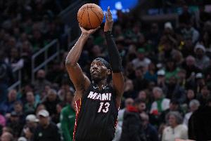 热火内线阿德巴约开场后面对霍姆格伦打得十分出色,进攻命中率非常高,但霍姆格伦下场休息后反而接连打铁。