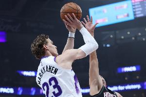 上半场比赛,爵士前锋马尔卡宁继续稳定发挥,还上演精彩自抛自扣,他出战19分28秒,11中5,三分5中2,罚球1中1拿到13分6篮板(3前场篮板)1助攻1抢断1盖帽,正负值+4。