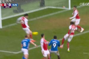 体育资讯02月07日讯 英超第25轮,阿森纳vs桑德兰。比赛第8分钟,拉亚禁区内脱手造成险情,哈弗茨回防救空门!