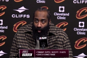 体育资讯2月12日讯 NBA常规赛,骑士138-113大胜奇才,赛后哈登接受采访。
