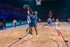 一出手就有!杨瀚森面对克林根45度三分命中!
