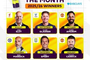 体育资讯02月14日讯 英超官方此前宣布,曼联主帅卡里克当选英超一月最佳教练,英超也晒图总结了本赛季目前为止的六位月最佳教练得主。六人分别是: