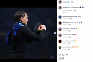 他也在赛后通过社媒晒出自己向妻子示爱的庆祝照,并艾特了对方:“意大利国家德比获胜⚫️🔵⚽️@_laurazielinska🫶🏻💝”