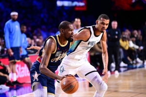 本次全明星赛,文班亚马出战2场,分别得到14分6篮板3盖帽、19分2篮板。