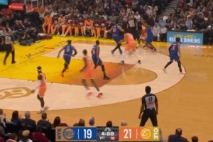 花了啊!哈登底角三分球&莫布里二次进攻暴扣 骑士领先19分