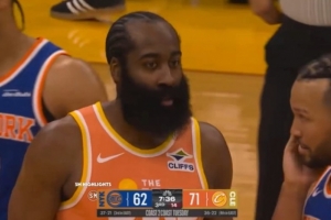 GIF-哈登防守打到了布伦森的面部