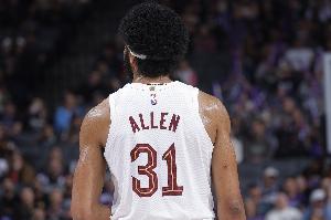 两双到手!贾勒特·阿伦半场9中7砍下16分10板2断1帽 罚球2中2