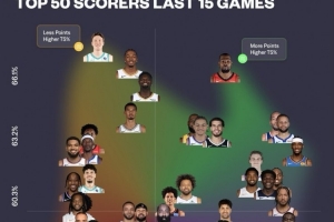 美强惨!库里生涯229场得分25+罚球不足5次 历史榜单领头羊!