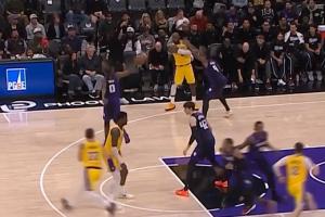 波杰姆飞天抢板坐着OG下落 不慎踢到后者鼻子 回看后未升级