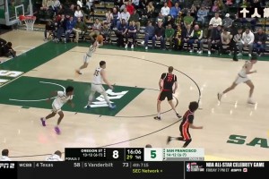 詹姆斯全明星赛前热身:超远logo三分+双手扣篮